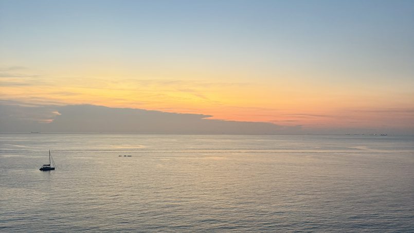 Experience a cozy coastal getaway in this stylish seafront apartment, an open-concept space that comfortably sleeps up to four guests with one queen bed and two single beds. The living area is perfect for relaxing, featuring forest-green leather sofas and a wide TV for your favorite shows, all set against a cool marble-and-wood accent wall. You’ll love stepping out onto the private balcony to soak in the sea breeze and direct ocean views, and you can easily prep your own food in the fully equipped kitchen. With a clean bathroom and full air-conditioning to keep things chilly, this spot has everything you need for a laid-back and memorable stay by the water.